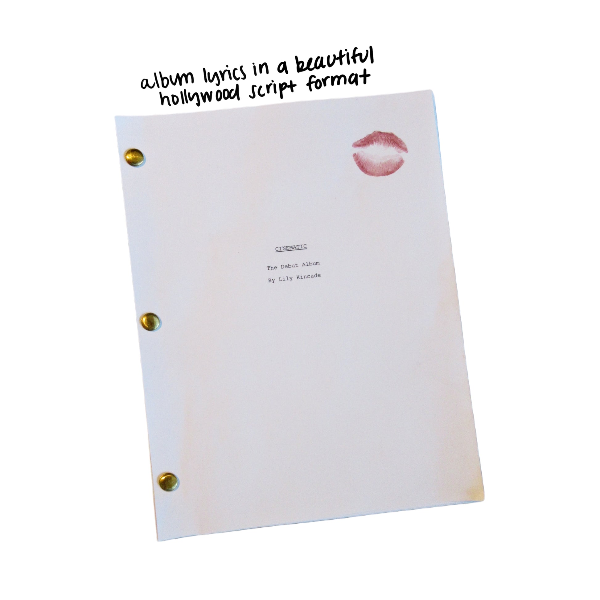 Every story begins with a script. This 41-page handmade lyric book was created by me, for you, featuring every single lyric from my debut album Cinematic. Keeping with the theme of old Hollywood and the beauty of all things overdramatic, I wanted to type out each lyric in full script format, like a movie script straight from the Golden Age, turning the album into something you can hold, read, and display forever.
